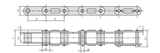 The feed chain in ANSI series agricultural chain has the following characteristics:Adopt special structural design to improve the reliability of products; Among them, the surface of the pin shaft is specially hardened, and its service life is increased by more than 2 times.