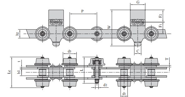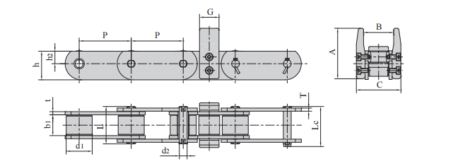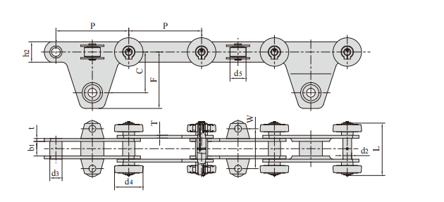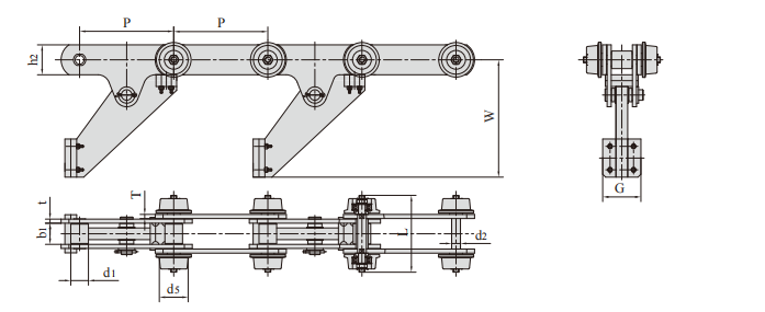 1.Swing bar chain: the design of extemal roller and oil injection hole structure is adopted to realize stable operation of the chain and prolong its service life.