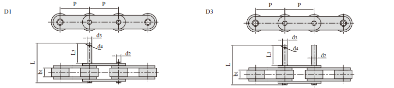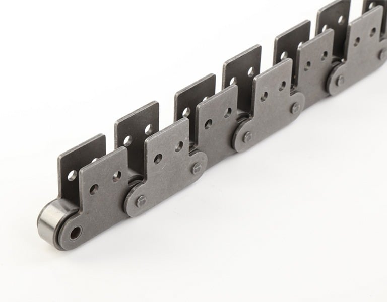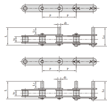 The accessories of roller chain for transportation are designed in different structural forms according to the use requirements, which have the characteristics of universality and diversity, among which the accessories such as horizontal bending attachment plate, vertical attachment plate with holes and lengthened pin shaft are widely used.