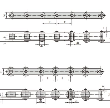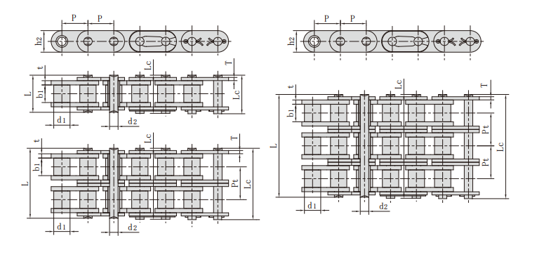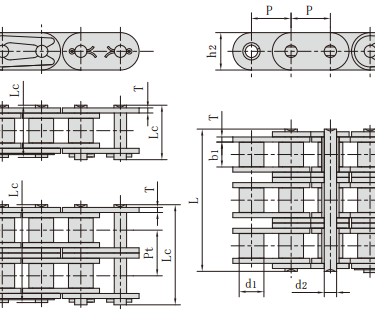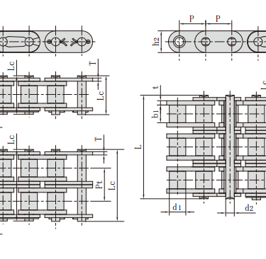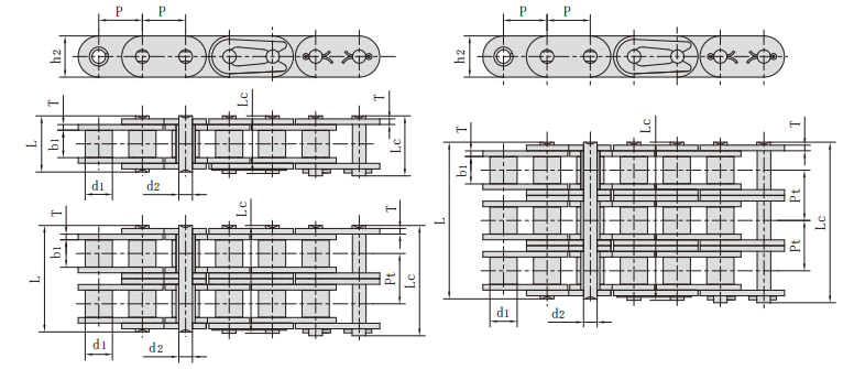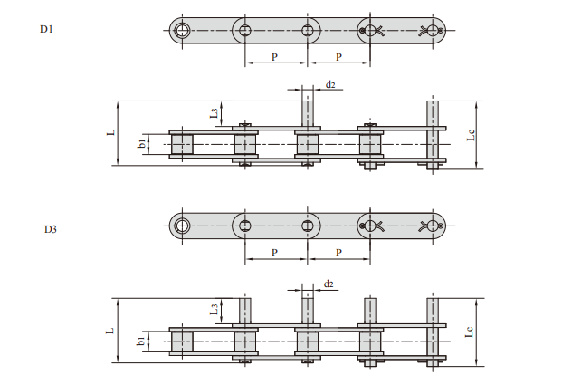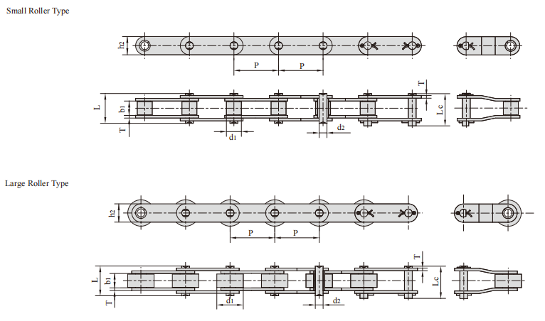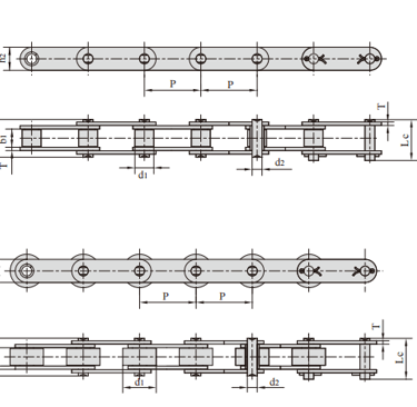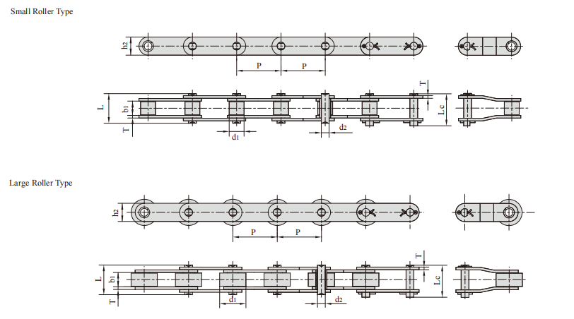 The basic chain size of roller chain for transportation conforms to ISO, ASME/ANSI DIN, JIS and other standards, mainly including A series straight chain roller chain, B series straight chain roller chain, short pitch conveyor chain with accessories, double pitch conveyor chain, double pitch conveyor chain with accessories, etc.