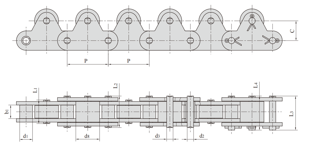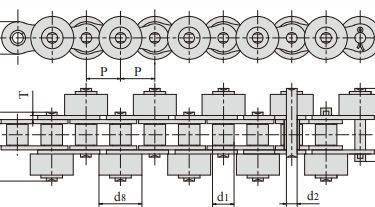 Free-flowing chain refers to a chain whose moving tempo can be controlled according to the requirements of users under the condition that the moving speed of the chain is constant during operation. Under the condition that the running speed of the chain is constant. the speed of conveying articles can be adjusted according to the specific use requirements.It mainly includes: double speed chain, conveyor chain with big roller.conveyor chain with side roller, conveyor chain with special roller, conveyor chain with top roller with short pitch, conveyor chain with top roller with double pitch. etc.