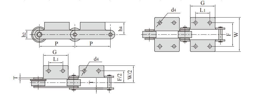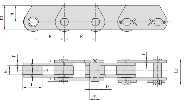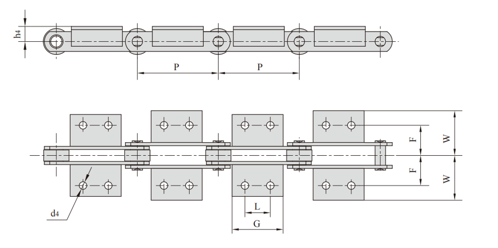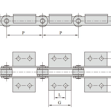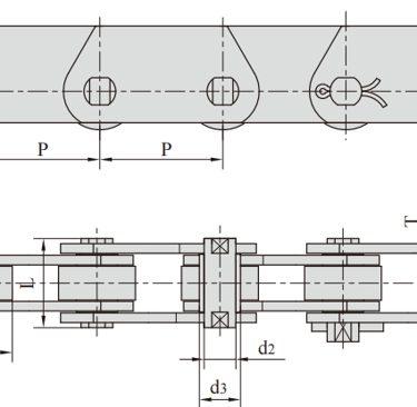 FV series conveyor chains meet DIN standard, mainly including FV type conveyor chain, FVT type conveyor chain and FVC type hollow pin shaft conveyor chain .FV series conveyor chain refers to roller chain or sleeve chain whose chain pitch is metric integer (various pitches ranging from 40 mm to 500 mm). The rollers have various structural forms, and various accessories are configured according to the service conditions