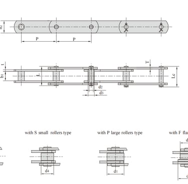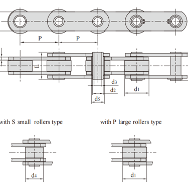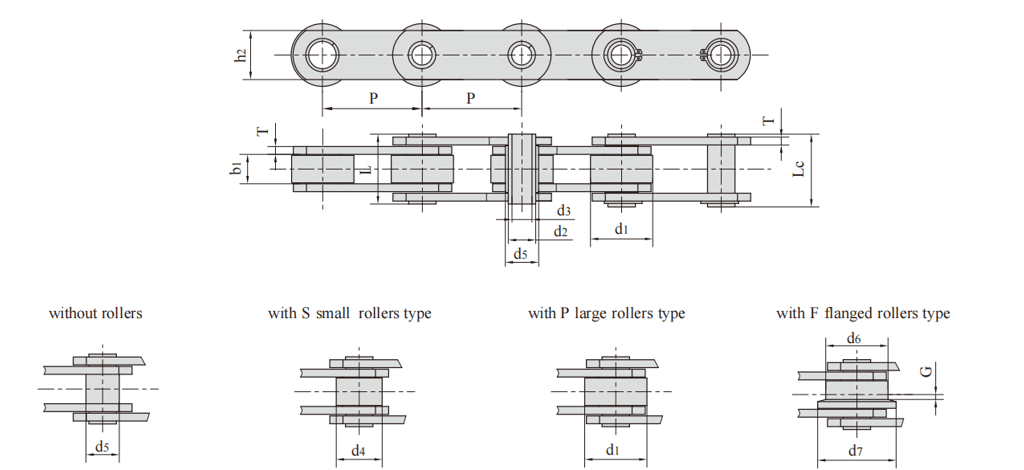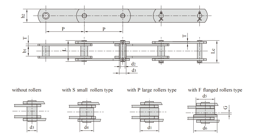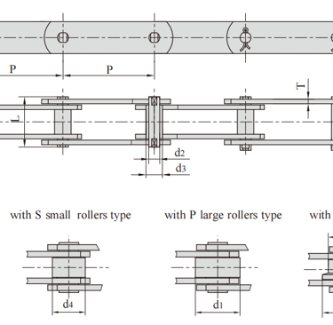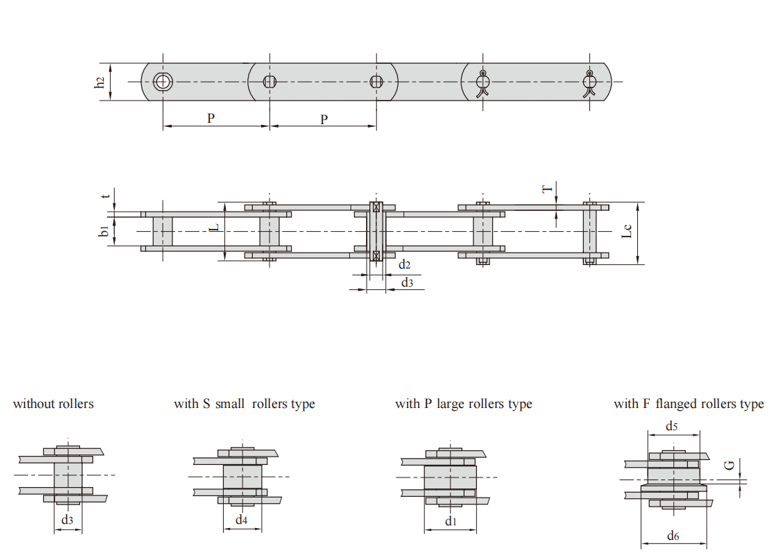 FV type is solid pin transmission chain, FVC type is hollow pin transmission chain, FVT type is large roller heightening chain plate transmission chain, and FV type and FVT type chain have two kinds of products with tensile strength indexes for users to choose from.