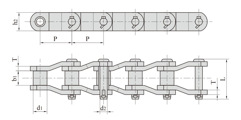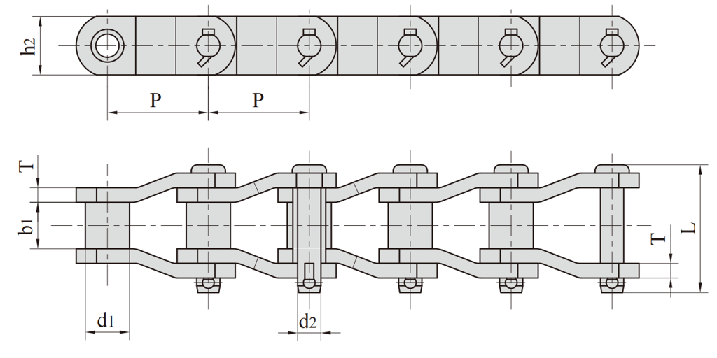 Heavy duty cranked roller chain for heavy-duty transmission conforms to ISO 3512.ASME B29 10, DIN 8182 and other standards.