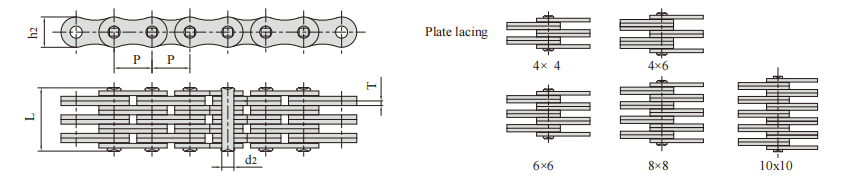 Plate chain for stacking machine is a special-purpose plate chain derived from standard plate chain, which is mainly used for stacking machine for empty containers import, and can meet the characteristics of large bearing weight and high lifting height.