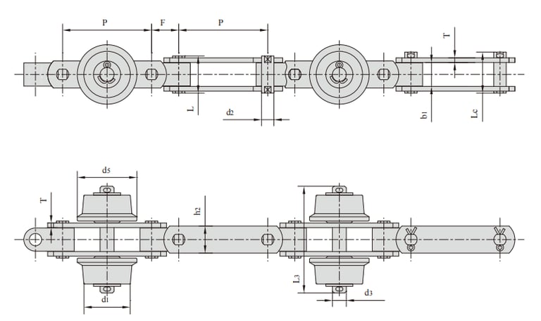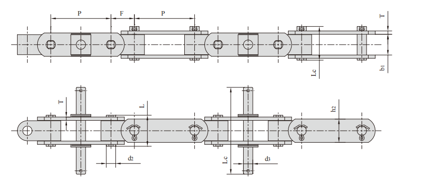Meat production line conveyor chain is mainly used for slaughtering, cutting, deboning and other production lines of livestock and poultry meat processing, and the products mainly include P8o series, SJ double hinge series and other chains.
