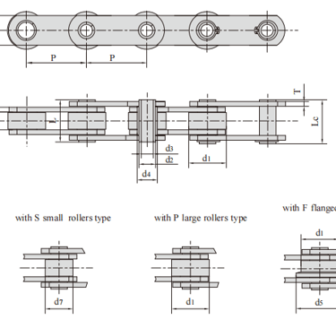 Metric conveyor chain refers to roller chain or sleeve chain whose chain pitch is metric integer (various pitches ranging from 40 mm to 1000 mm). The rollers have various structural forms, and various accessories are arranged according to the service conditions