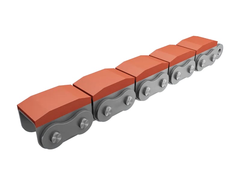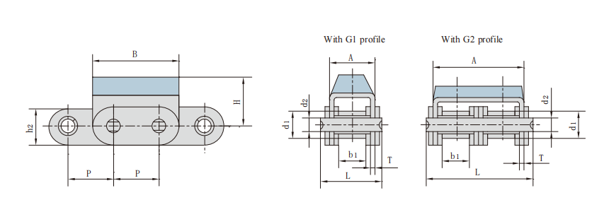 Rubber attached plate chain is a chain with rubber top plate on the basis of standard short pitch precision roller chain as base chain, and the base chain conforms to ISO,ASME/ANSI DIN, JIS and other standards.